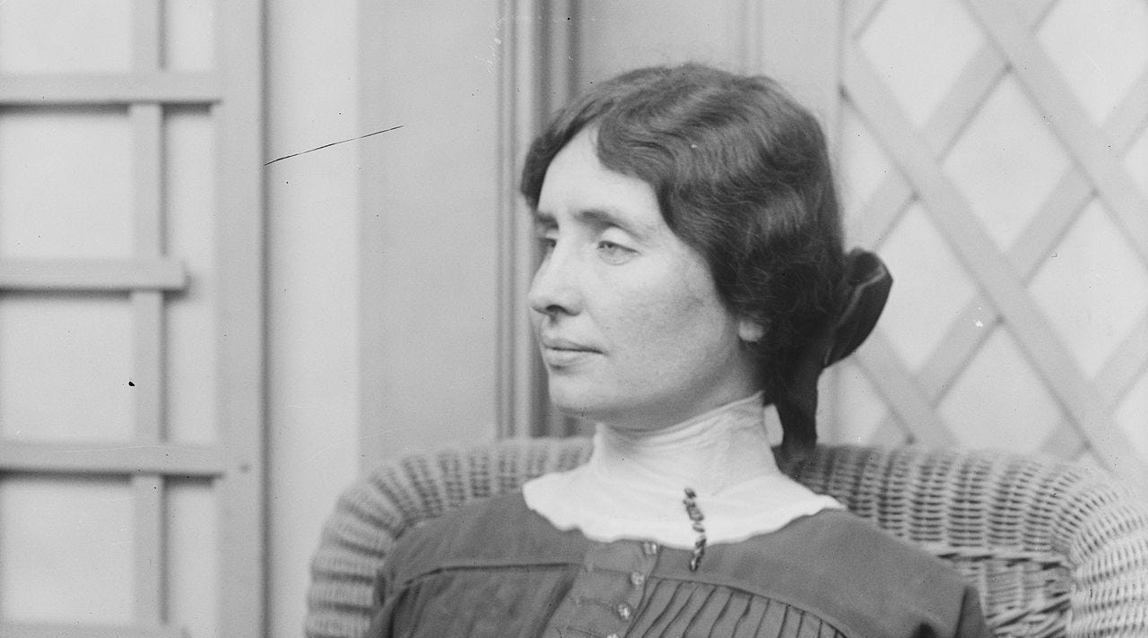 Helen Keller est née en 1880 aux États-Unis et a perdu la vue et l’ouïe très jeune suite à une maladie infantile. Malgré son handicap, elle a fait de brillantes études universitaires et est devenue écrivaine et militante pour les droits des plus vulnérables.