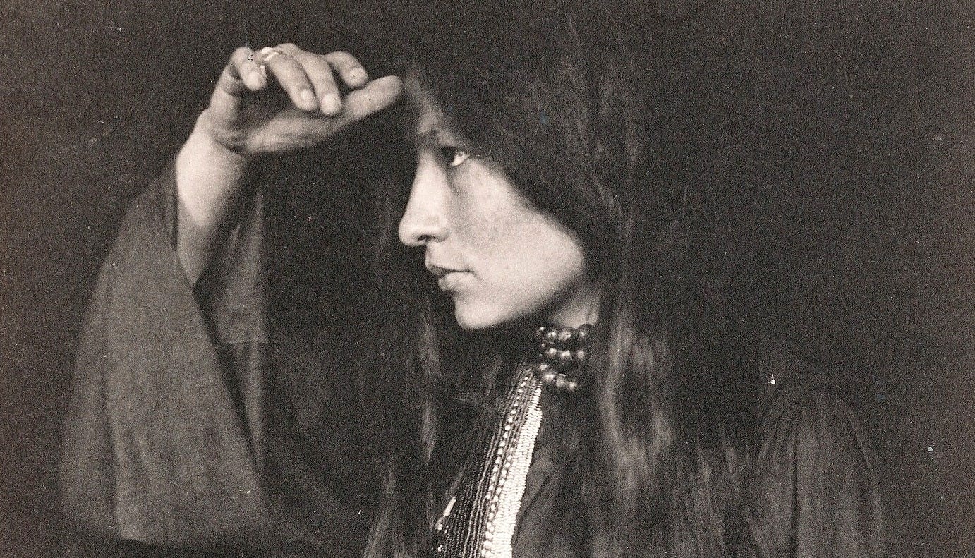 Zitkála-Šá est née en 1876 dans une communauté dakota en Amérique du Nord. Elle a consacré sa vie à la lutte pour la justice et la reconnaissance de l’identité, la culture et les droits des peuples autochtones.